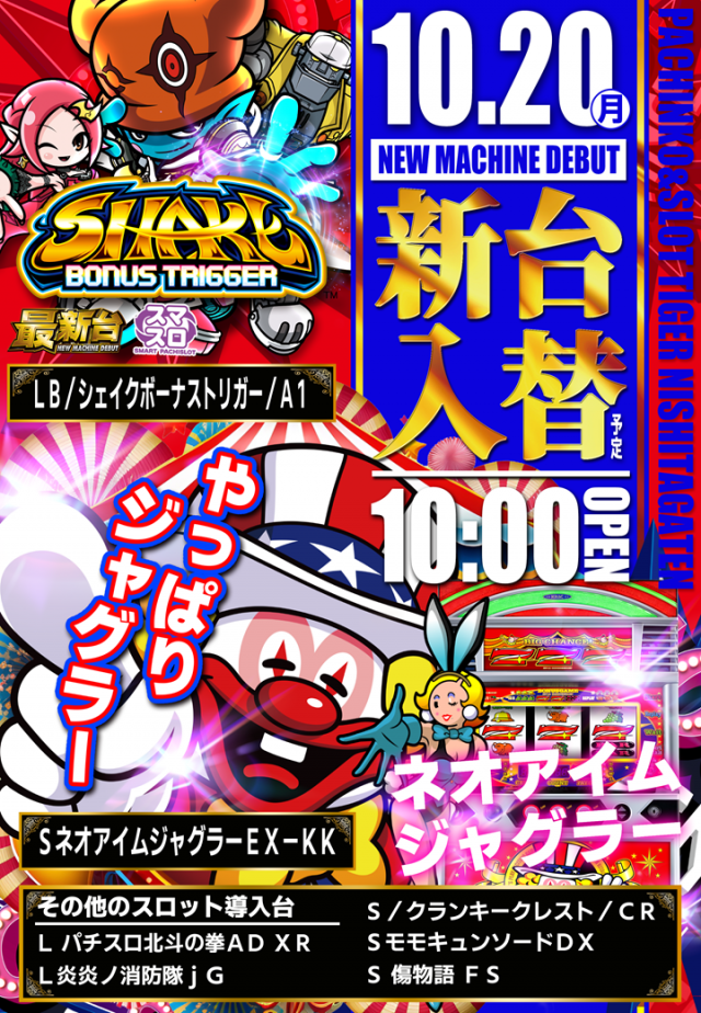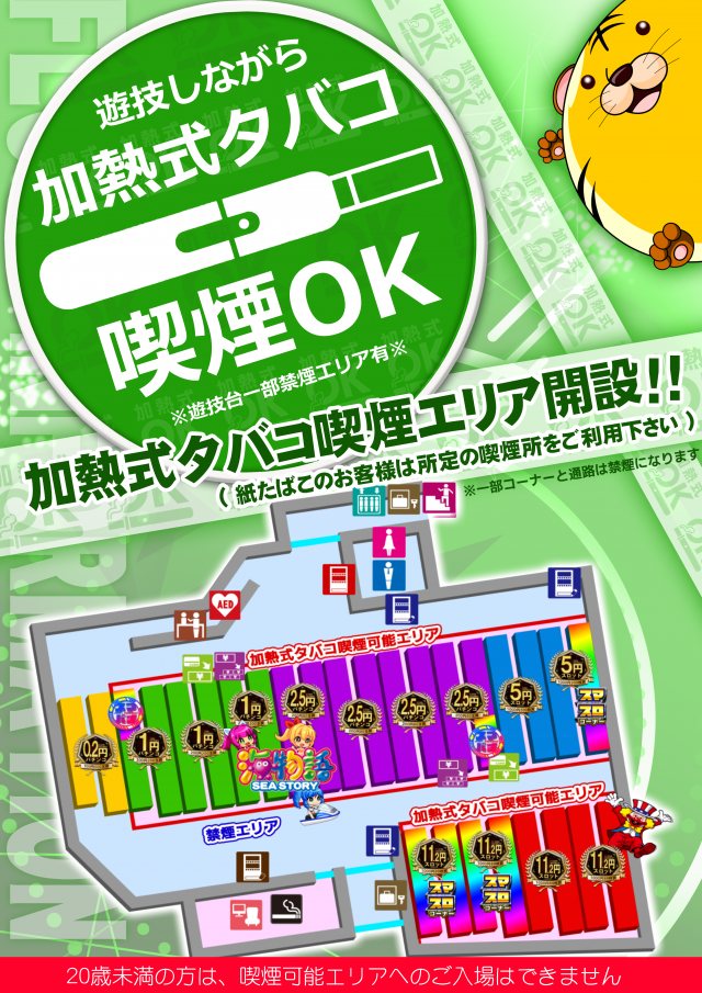 - [2.5]パチ:156台 [1]パチ:120台 [0.2]パチ:35台 [1000円/89枚]スロ:129台 [5]スロ:69台