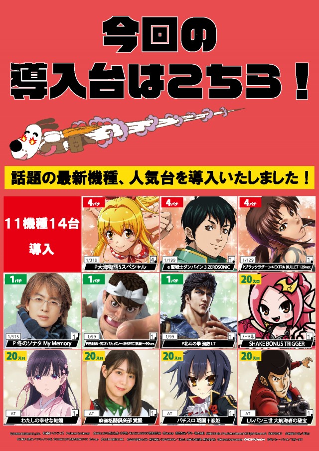 - [4]パチ:112台 [1.124]パチ:188台 [1000円/46枚]スロ:140台 [2.5]スロ:25台