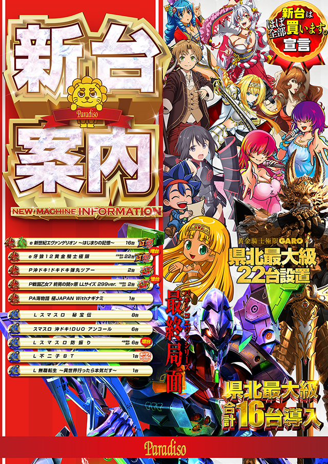 - [None]パチ:420台 [None]パチ:208台 [None]スロ:424台