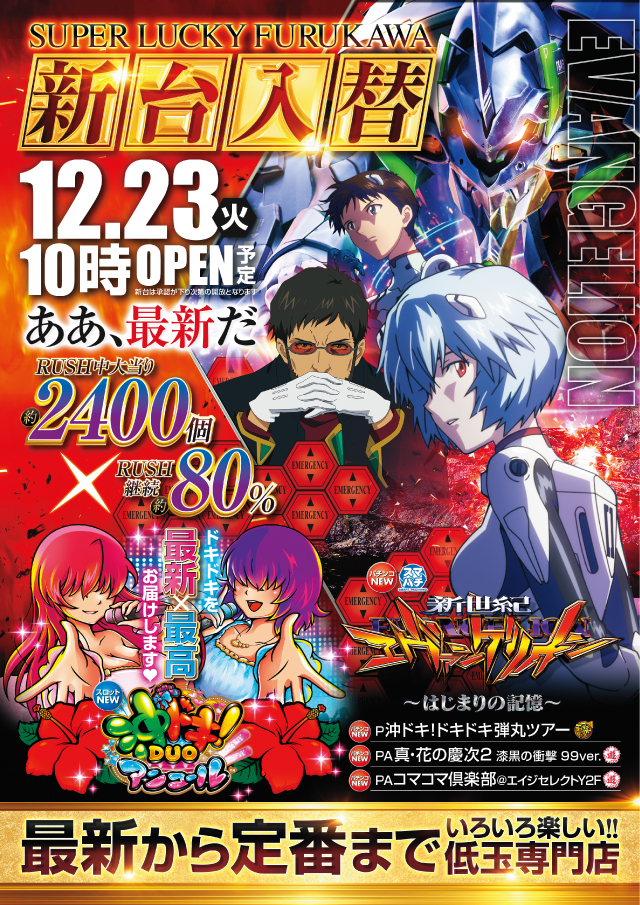 - [200円/172玉]パチ:192台 [2.326]パチ:32台 [1000円/172枚]スロ:32台 [11.628]スロ:144台