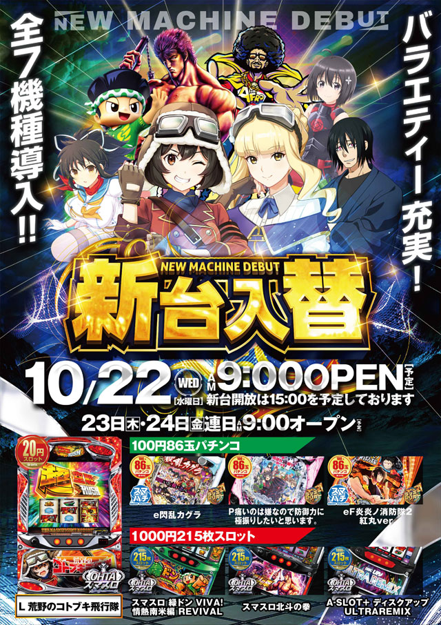 - [1.163]パチ:127台 [4]パチ:112台 [20]スロ:186台 [2.33S]スロ:62台 [1000円/215枚]スロ:32台