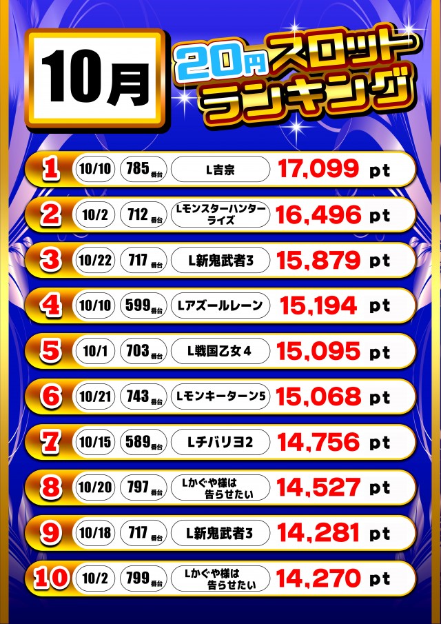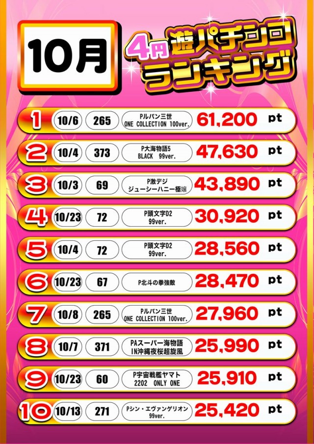 - [1000円/228玉]パチ:284台 [1000円/892玉]パチ:96台 [1000円/46枚]スロ:225台 [1000円/178枚]スロ:40台
