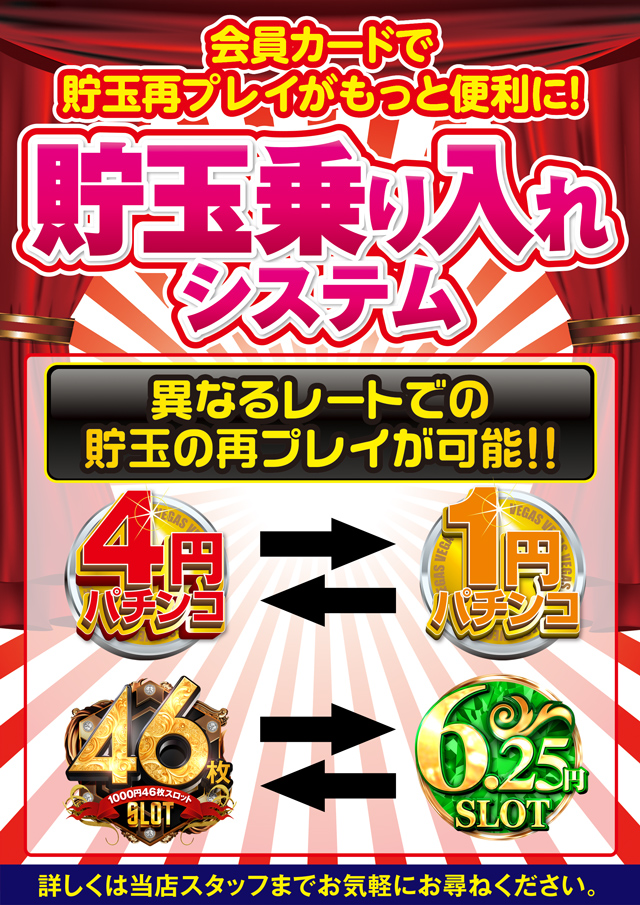 - 4パチ:40台 1パチ:280台 1000円/46枚スロ:80台 1000円/160枚スロ:80台