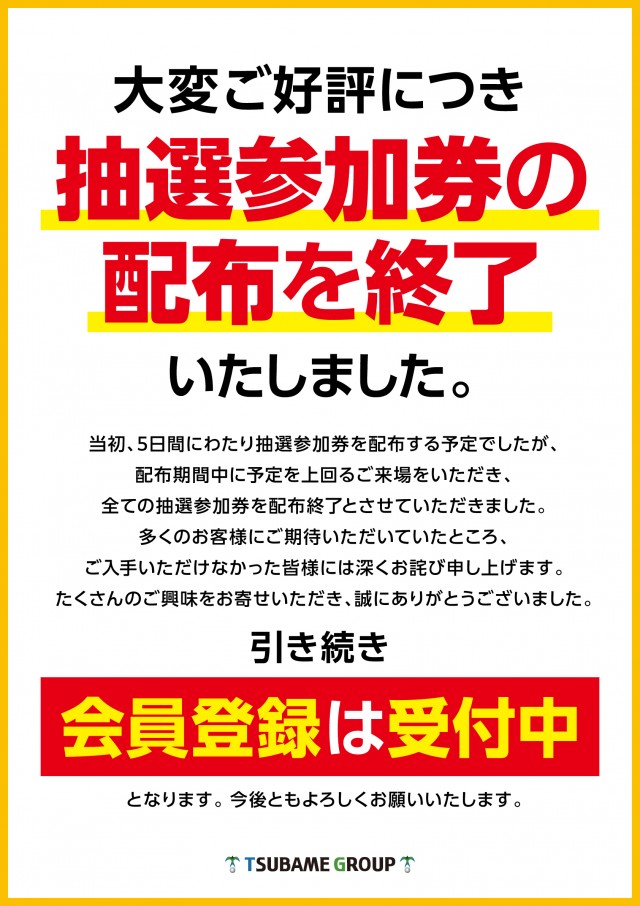 - 物を置いての場所取りは禁止です、割り込み等の不正行為はご遠慮ください