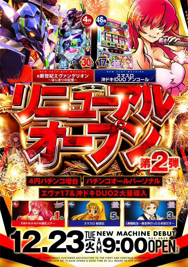 - [1]パチ:169台 [4]パチ:390台 [1000円/46枚]スロ:386台 [5]スロ:56台