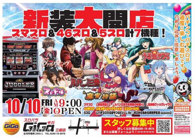 - 年中無休(※新台入替の前日はお休みとさせて頂きます。)