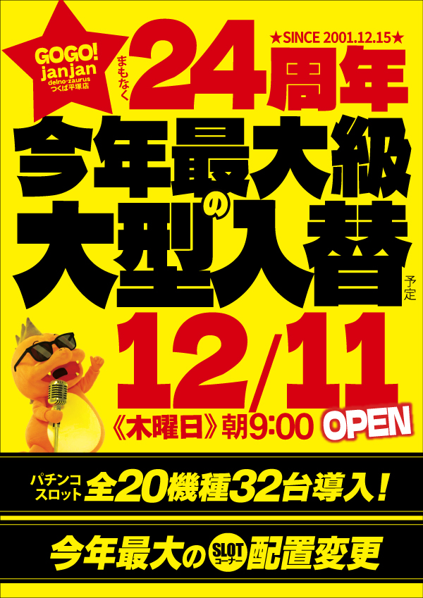 ジャンジャンデルノザウルスつくば平塚店の最新情報