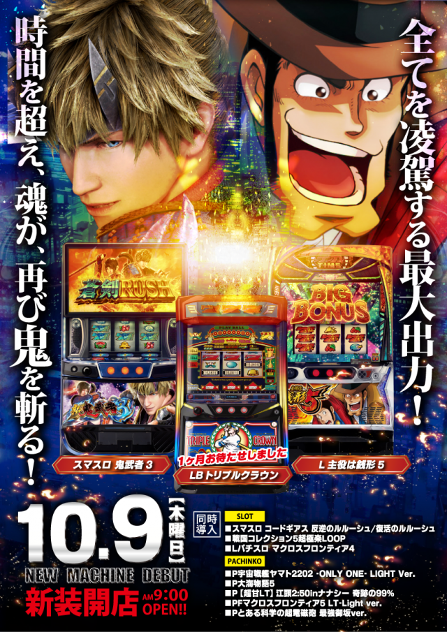 - [4.38]パチ:130台 [1.16]パチ:78台 [1000円/46枚]スロ:106台 [1000円/86枚]スロ:156台 [1000円/172枚]スロ:95台 [2.5]スロ:19台