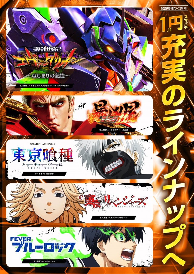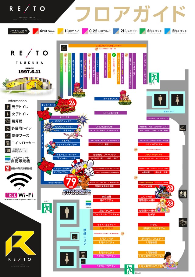 - [4]パチ:299台 [1.111]パチ:126台 [0.22]パチ:26台 [1000円/46枚]スロ:337台 [1000円/180枚]スロ:33台 [500円/225枚]スロ:41台