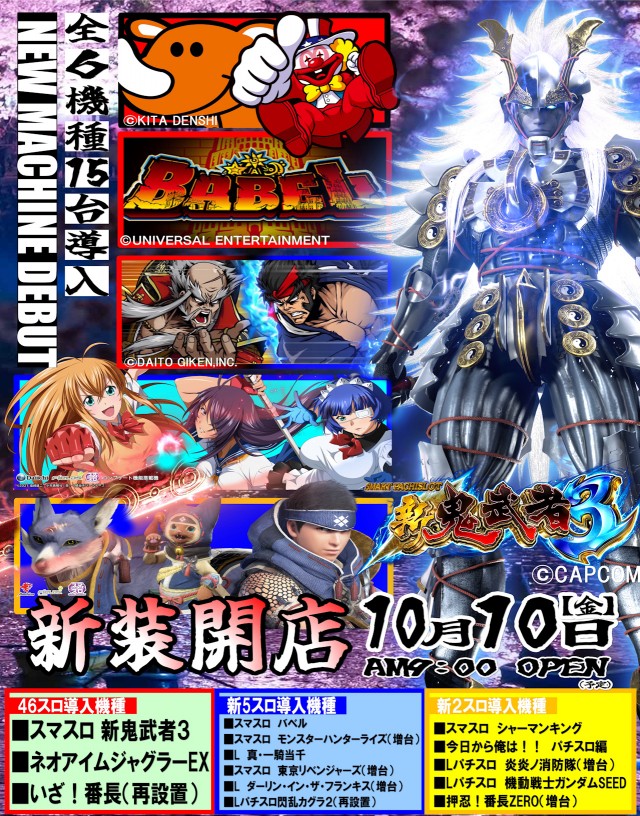 - 46枚スロ:163台 新5スロ:56台 新2スロ:56台 合計275台
