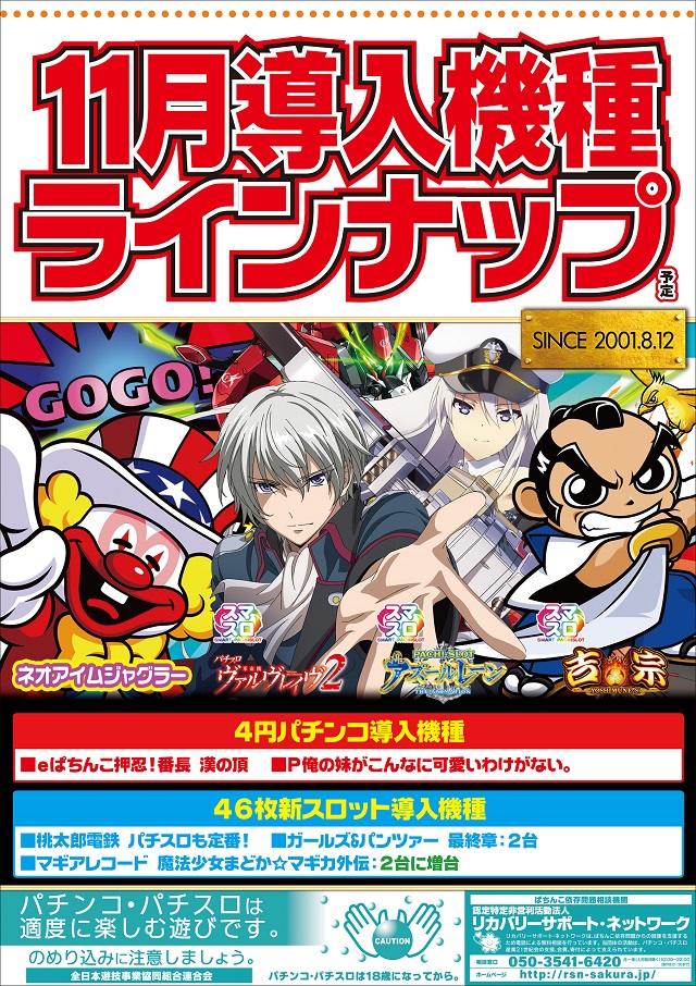 - [1000円/250玉]パチ:79台 [1]パチ:37台 [1000円/46枚]スロ:114台