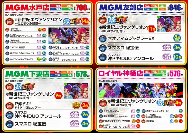 - [パチ] 4円:108台 1円:216台 0.2円:36台 計360台 [スロ] 20円:180台 5円:36台 計216台