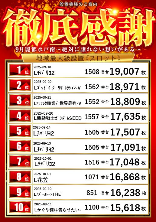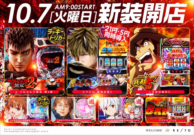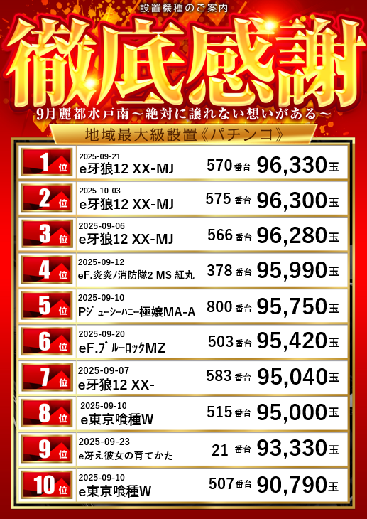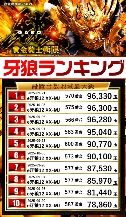 - 地域最大級の パチンコ&スロット 867台設置!! 地域最大級 ①ぱち最新台急増中!! 加熱式エリア有 禁煙エリア有