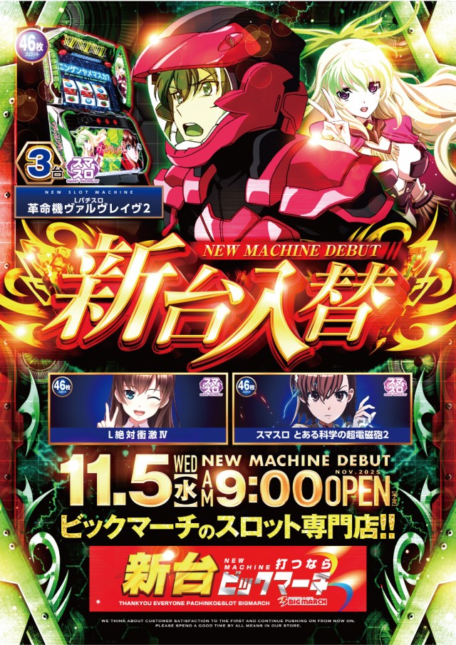 - [スロ]1000円/46枚:153台 1000円/180枚:28台 計180台