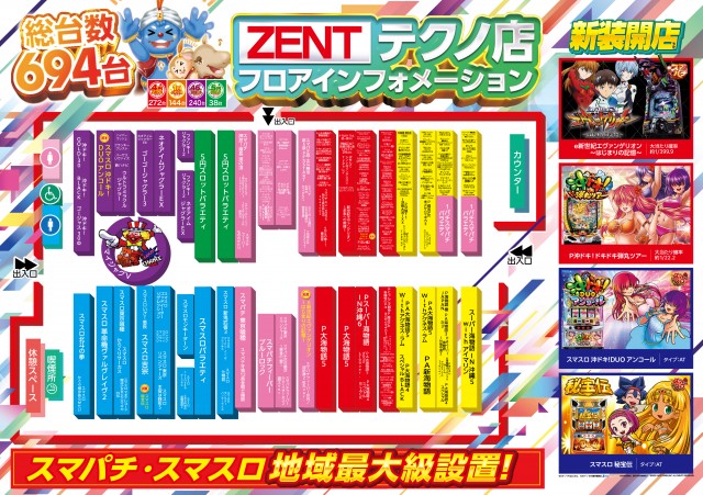 - [4]パチ:272台 [1.1]パチ:144台 [1000円/46枚]スロ:240台 [1000円/180枚]スロ:38台