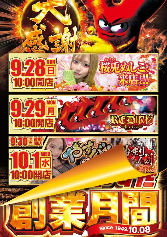 - 10:00~23:00 (平常営業日) 遊技終了時間 22:45