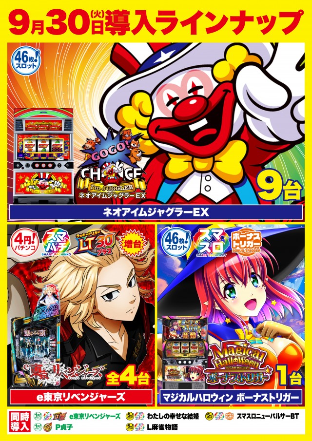 - 4円パチンコ:224台 1円パチンコ:160台 1000円/46枚スロット:269台 1000円/182枚スロット:71台