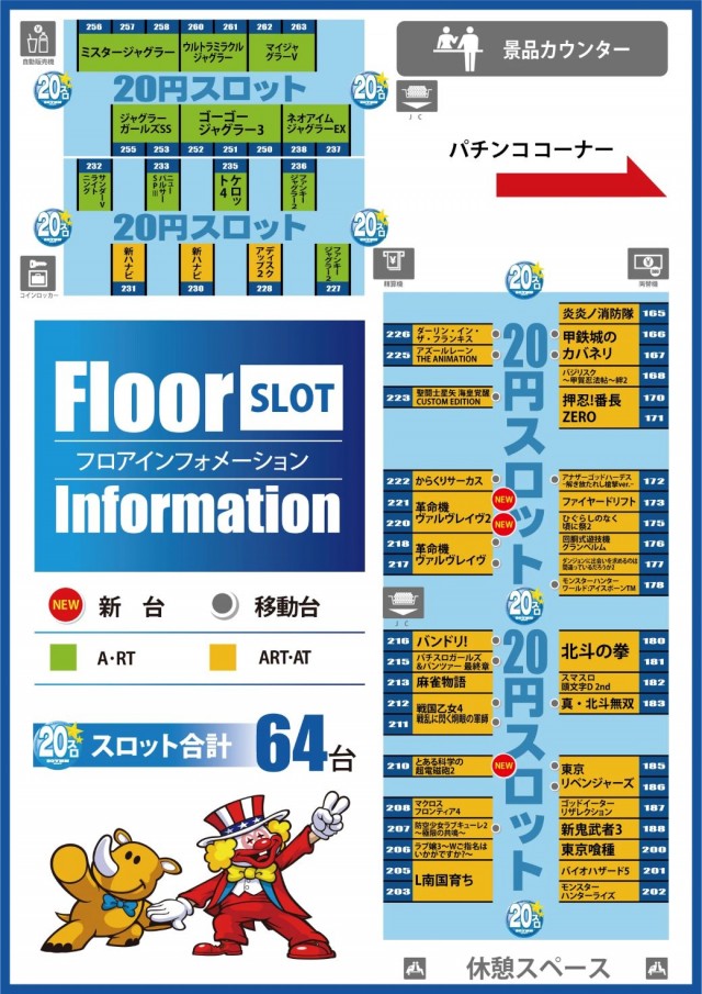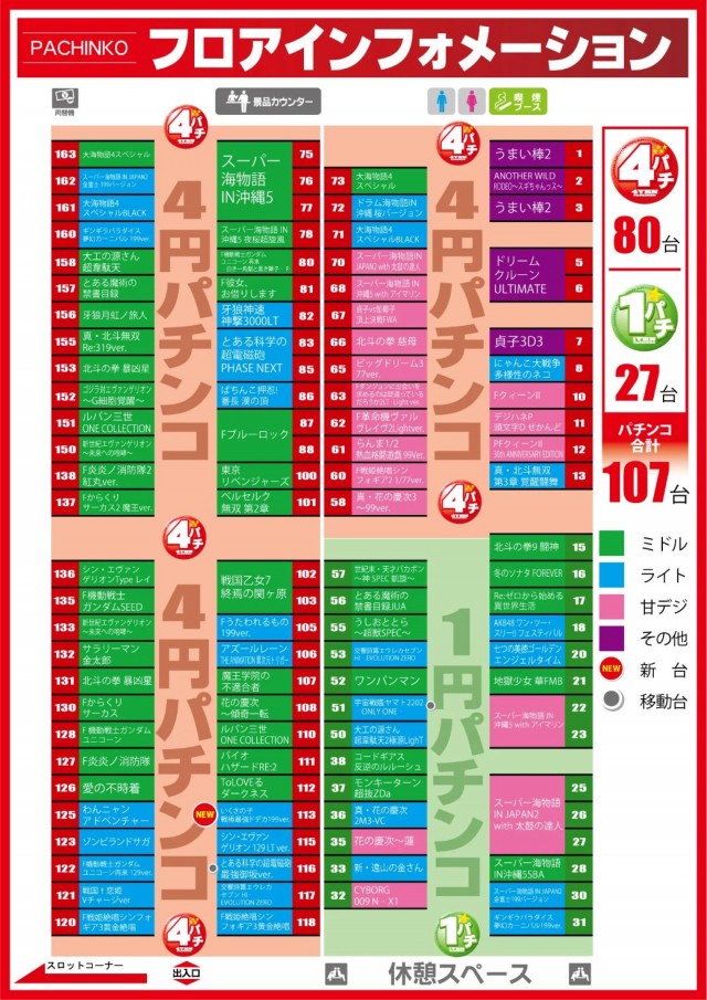 - 4パチ:80台 1パチ:27台 20スロ:64台