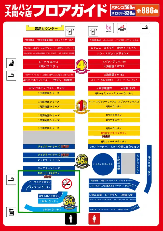 - [4]パチ:288台 [1]パチ:272台 [1000円/46枚]スロ:293台 [5.43]スロ:33台