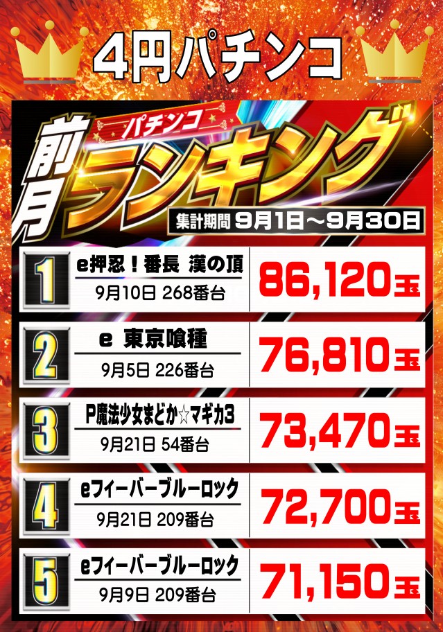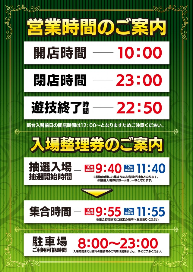 - パチンコ 324台:【4】【1】 パチスロ252台:【1000円/46枚】