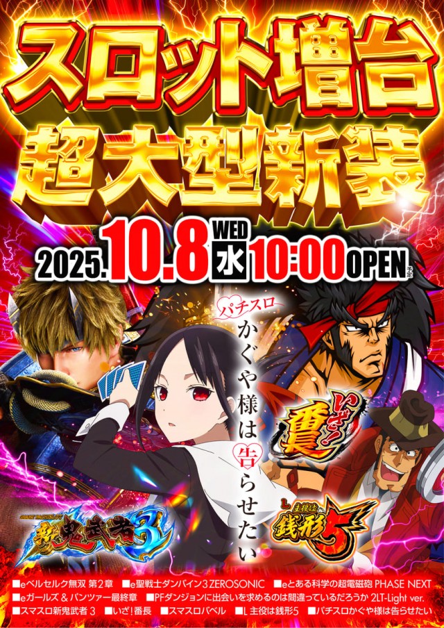 ▼10月8日(水) スロット増台 超大型新装▼