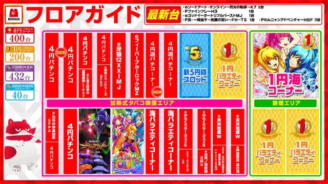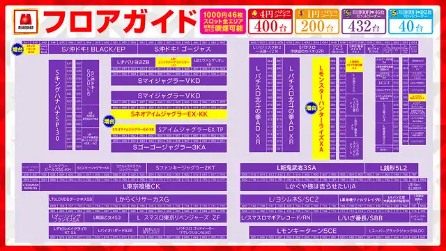 - [パチ] 4円:400台 1円:200台 計600台 [スロ] 1000円/46枚:432台 5.49円:40台 計472台