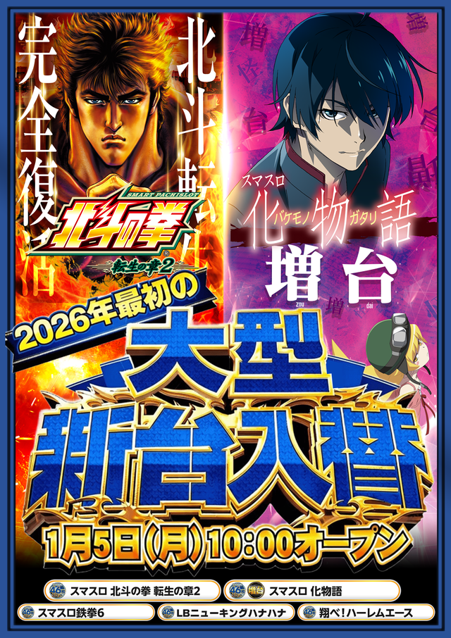 - 4パチ:308台 1パチ:157台 46枚スロット:337台 10スロ:13台 6.25スロ:80台 2.5スロ:13台 ※遊技金額、アイコン表示設定にて設定された金額が表示されます。設定はアイコン管理ページより設定ください