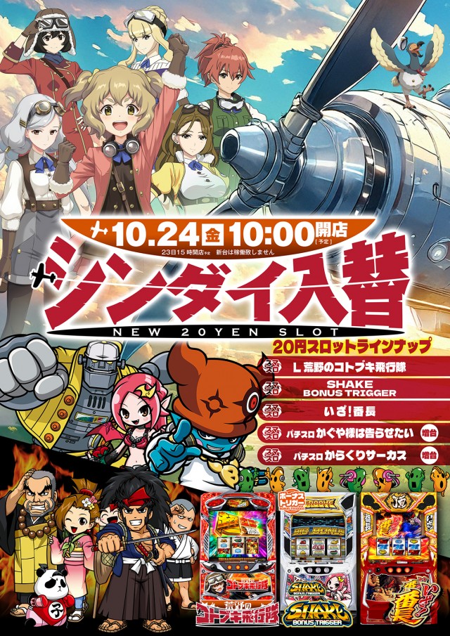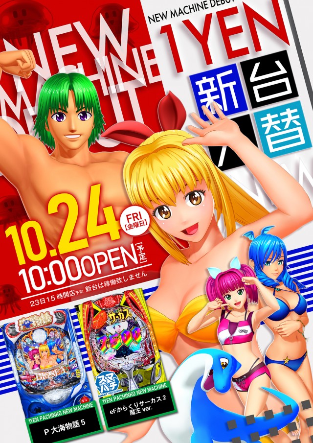 - 新台入替前日は15時開店予定