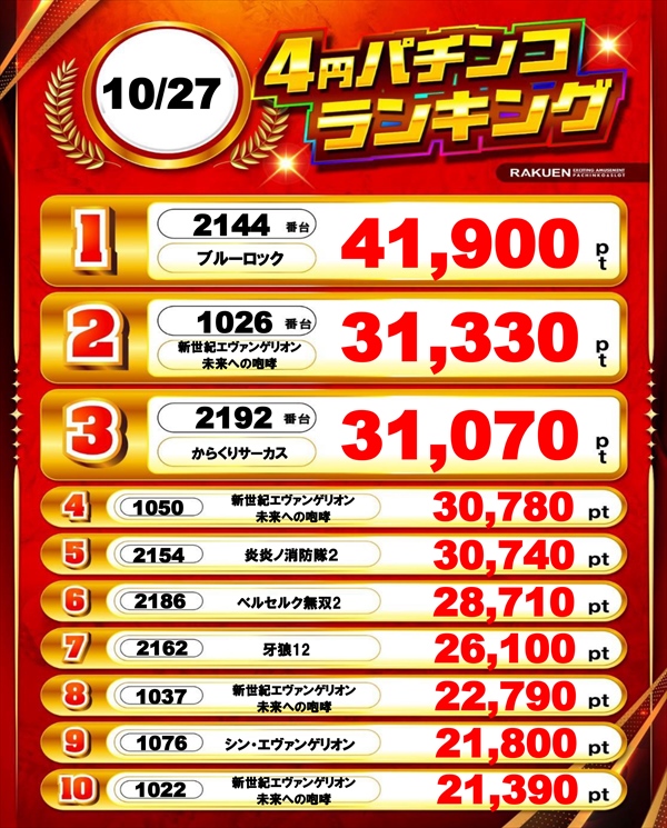 楽園渋谷駅前店の設置機種