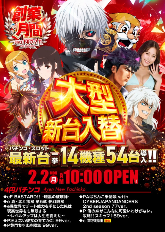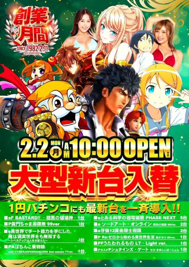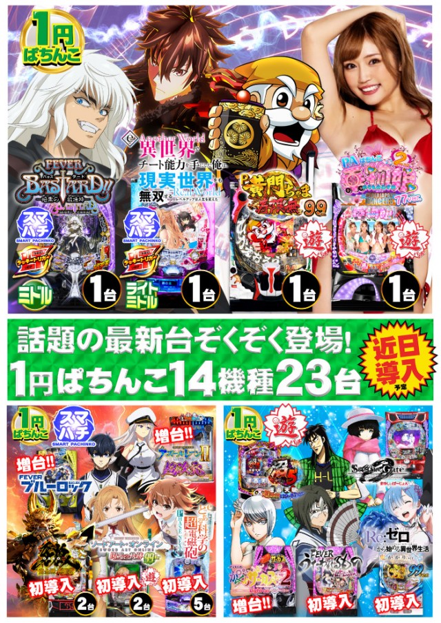 - パチンコ・スロット 合計626台設置 中野地区最大の アミューズメントパーク!! 話題の最新機種 地域最速大量導入!!