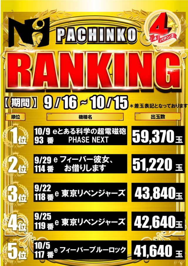 - [4]パチ:87台 [1]パチ:44台 [1000円/47枚]スロ:85台 [1000円/188枚]スロ:36台