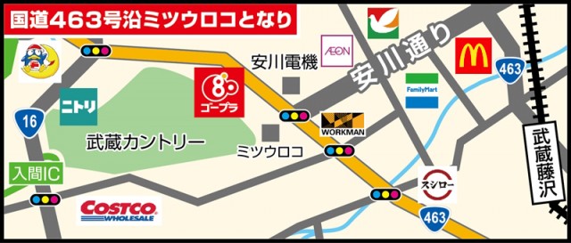 - 西武池袋線[武蔵藤沢駅]下車 西武バス[入間市駅行][入間扇町屋団地行]【西武グリーンヒル】バス停下車 徒歩10分