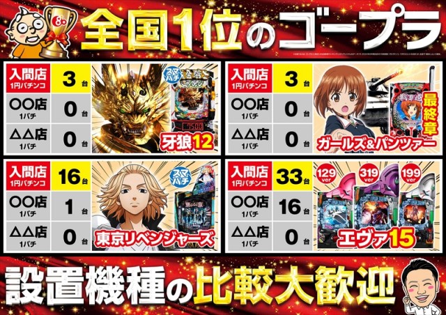 - [1]パチ:460台 [1000円/90枚]スロ:251台