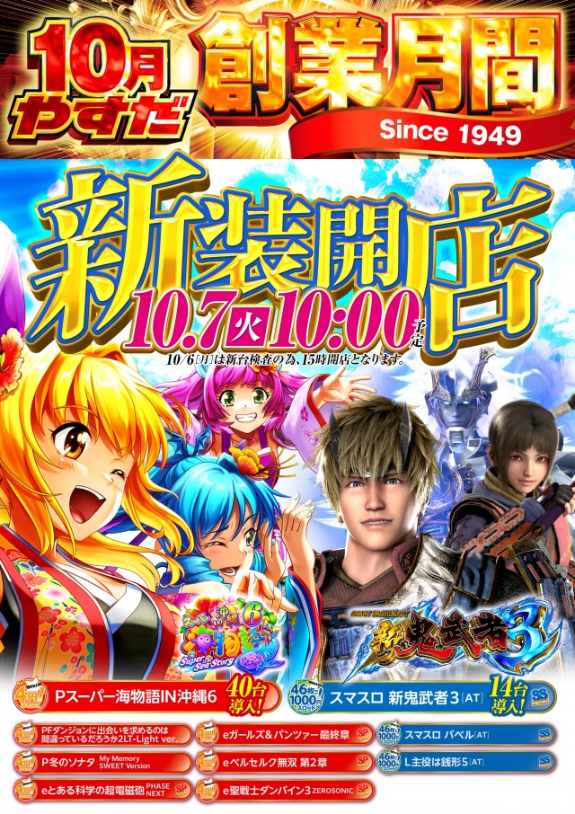 - 平常営業日 10:00~23:00 (遊技終了時間 22:45)