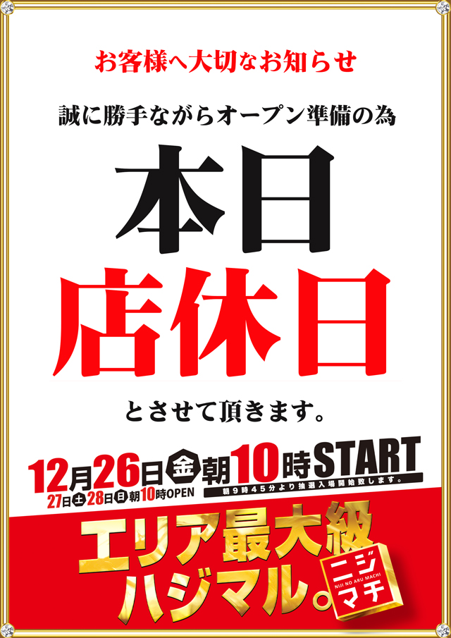 - 9:30から入場抽選を行います。※お時間の変更がある場合が御座いますので予めご了承くださいませ。
