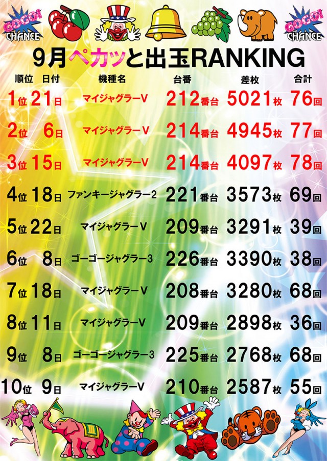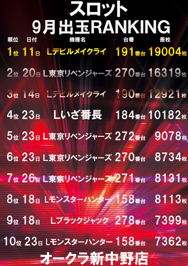 - [1]パチ:53台 [4]パチ:97台 [1000円/188枚]スロ:26台 [1000円/47枚]スロ:140台