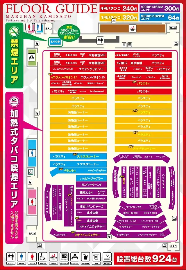 - [4]パチ:240台 [1]パチ:320台 [1000円/46枚]スロ:300台 [5.49]スロ:64台