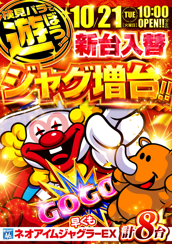 - パチンコ:[500円/115玉][500円/230玉][200円/184玉] スロット:[1000円/46枚][8円/1枚]