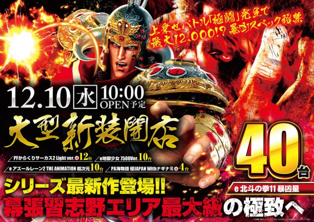 - 平常営業日 10:00~23:00 (遊技終了時間 22:45)