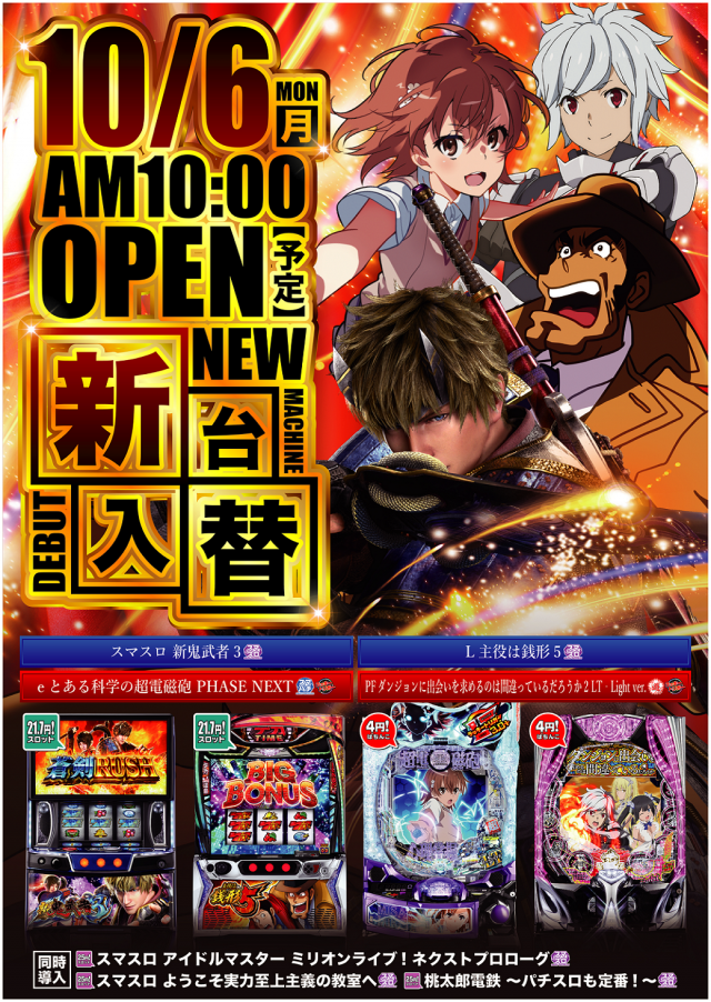 - 【4円パチンコ】 65台 【1円パチンコ】 44台 【0.5円パチンコ】 43台 【20円スロット】64台 【2.5円スロット】30台