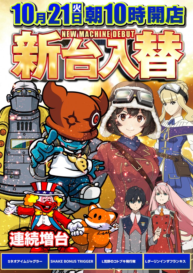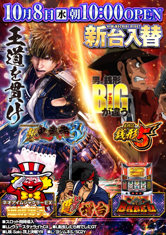 - 4パチ:178台 1パチ:135台 1000円=46枚スロ:172台 5スロ:24台