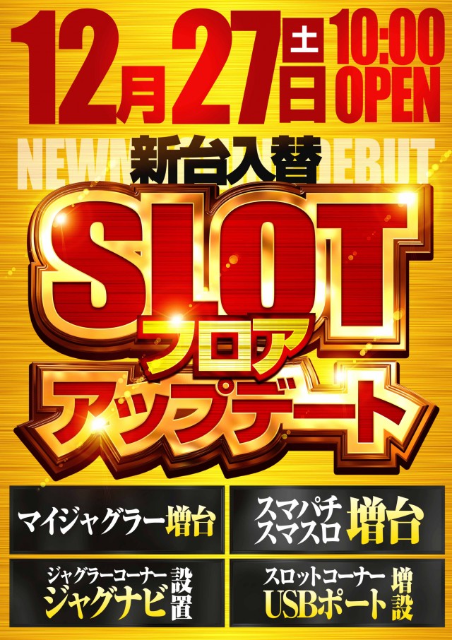 - [1]パチ:104台 [4]パチ:125台 [0.2]パチ:43台 [1000円/46枚]スロ:200台 [1,000円/160枚]スロ:35台