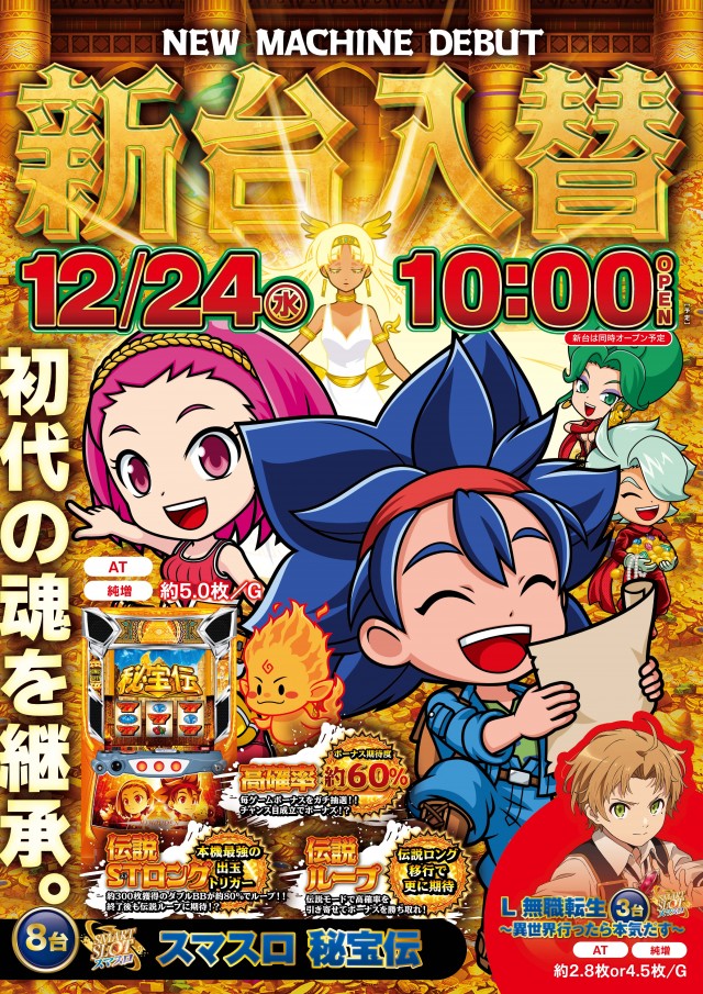- 朝一の入場案内・新台整理券の案内は店内とHPにてご案内しております。