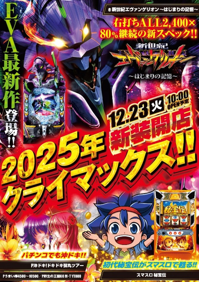 - 平常営業日 10:00~23:00 (遊技終了時間 22:45)