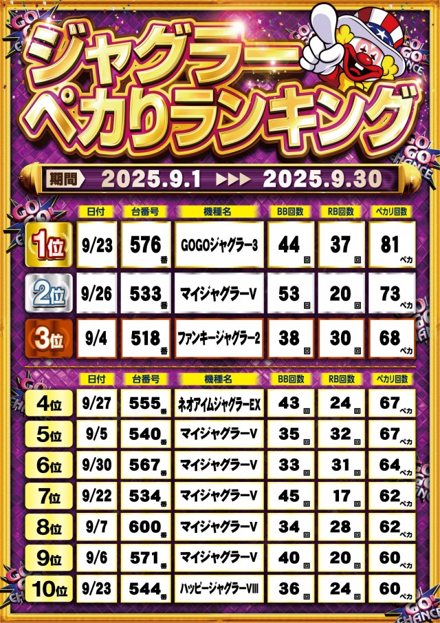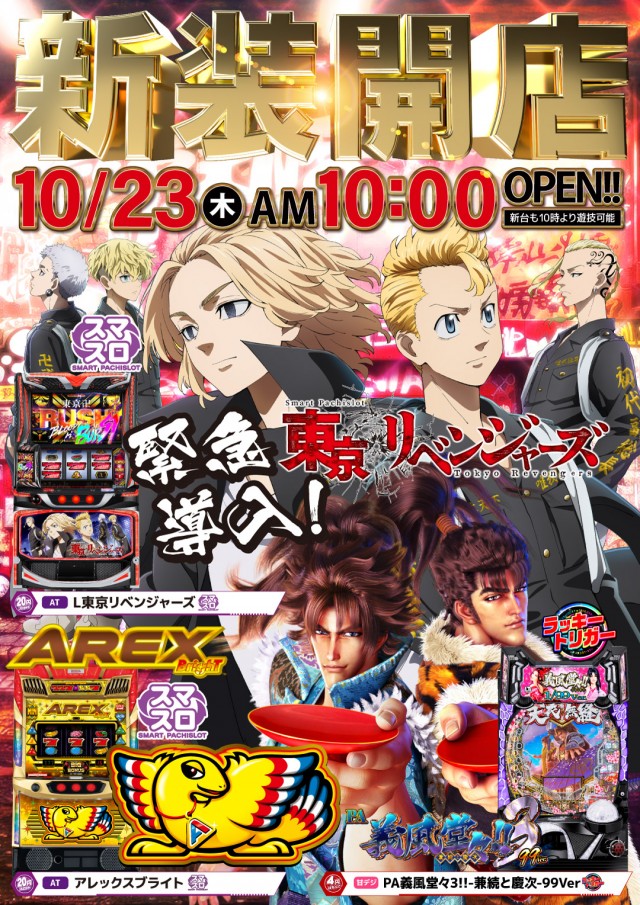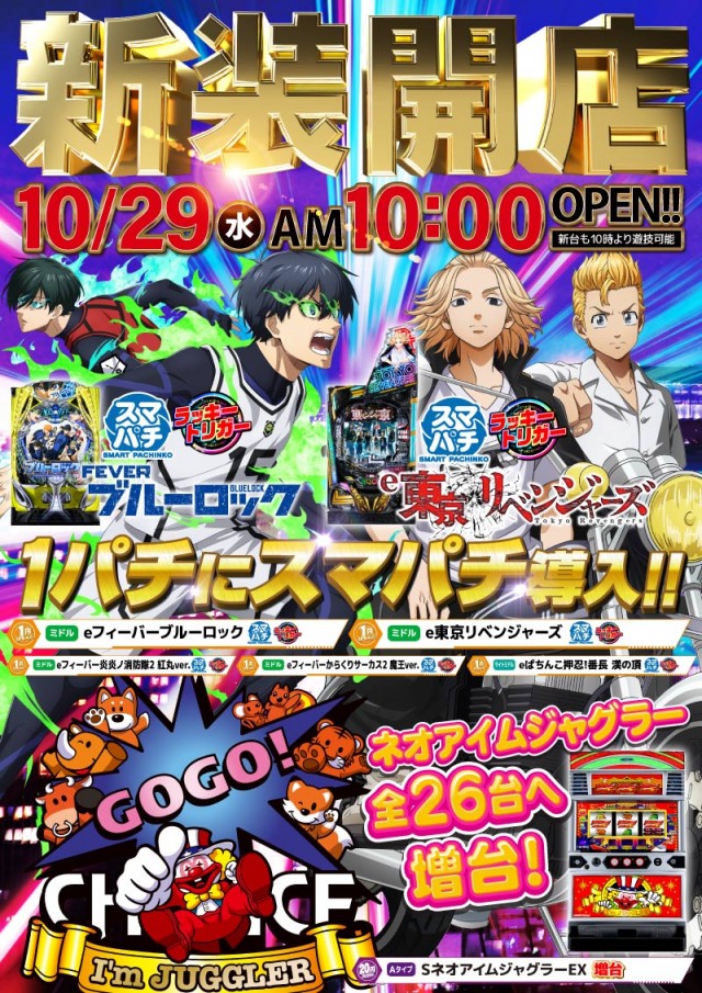 - 10:00~22:45 会員カード提示で22:55まで遊技延長可能