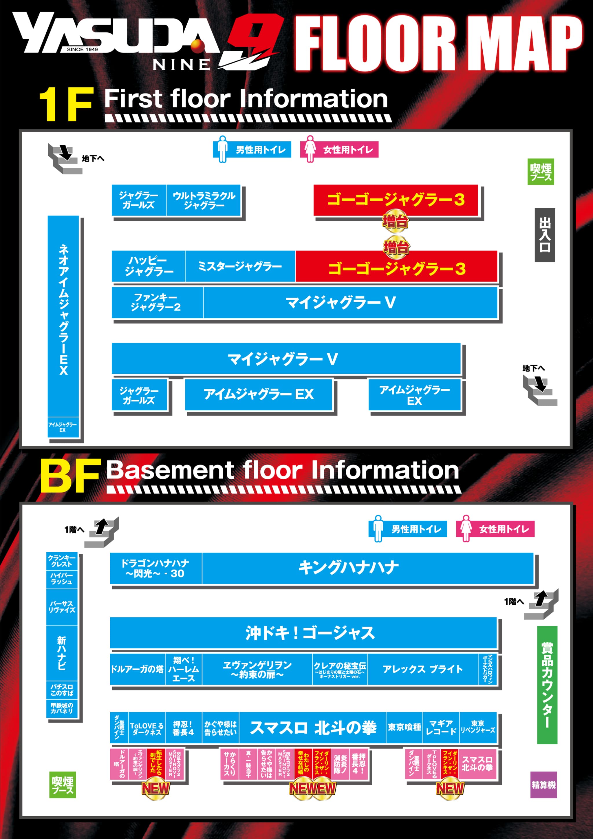- 平常営業日 10:00~23:00 (遊技終了時間 22:45)