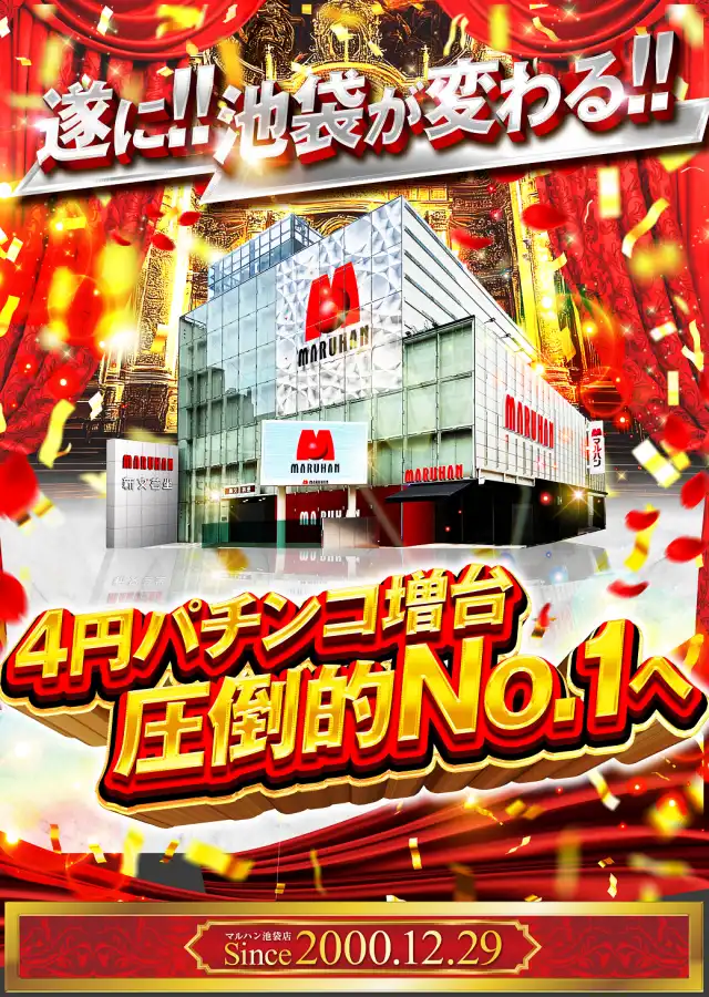 - ・平成12年12月誕生 ・グランドオープンSINCE2015.11.20 ・無料駐輪場完備 ・全台のデータが一目で分かる『マルハンズネット』設置 ・映画館『新文芸坐』との 複合施設