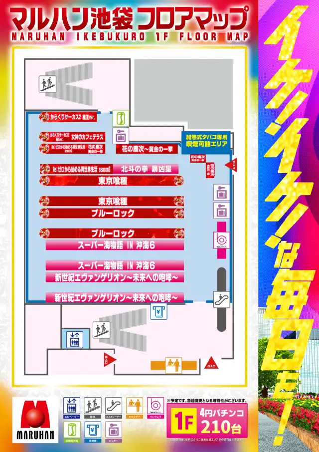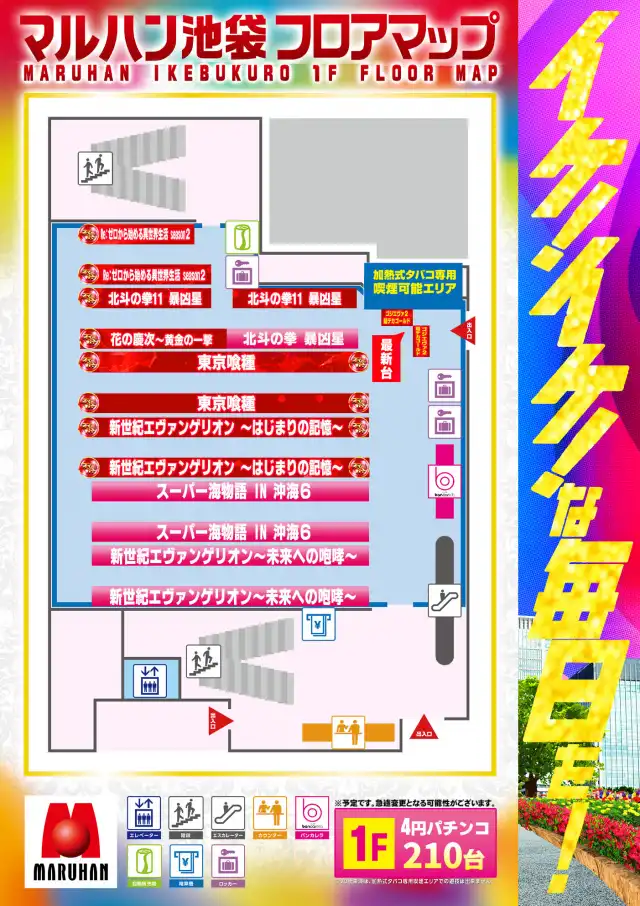 - ・平成12年12月誕生 ・グランドオープンSINCE2015.11.20 ・無料駐輪場完備 ・全台のデータが一目で分かる『マルハンズネット』設置 ・映画館『新文芸坐』との 複合施設