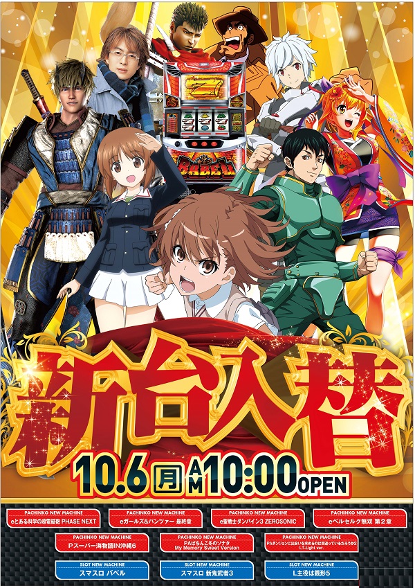 - [1.099]パチ:82台 [4.386]パチ:63台 [2.198]パチ:16台 [1000円/46枚]スロ:85台