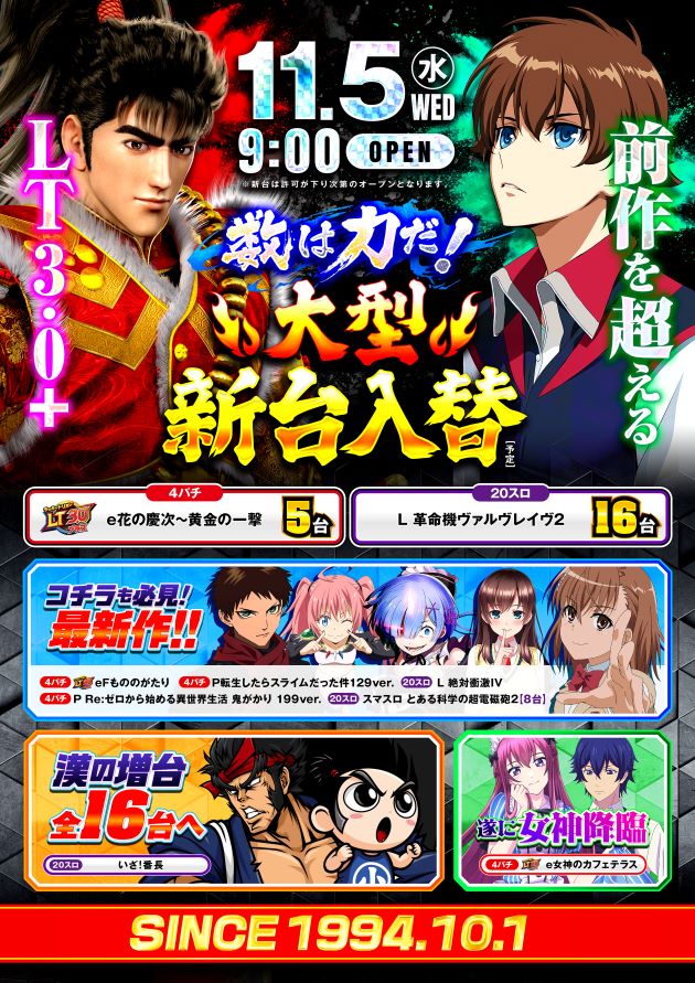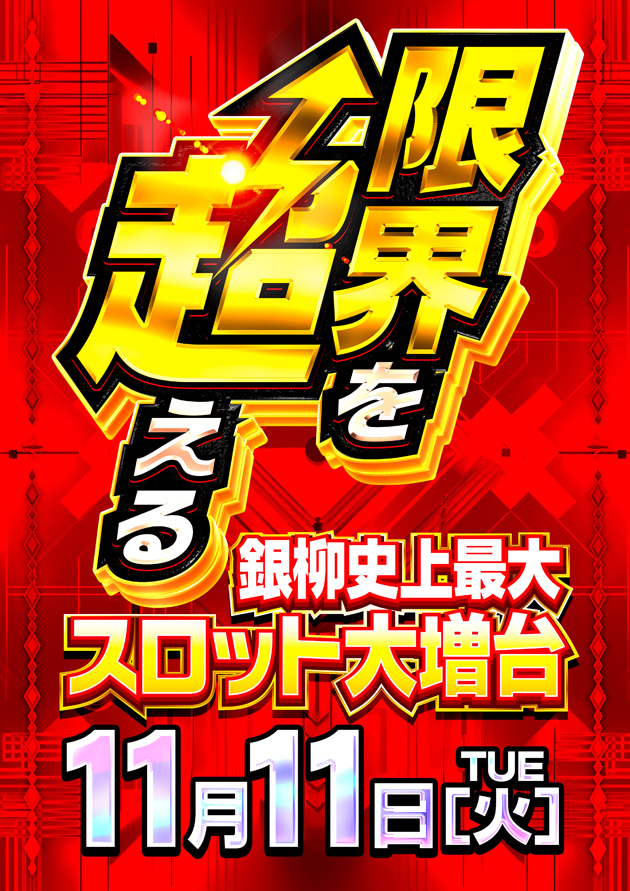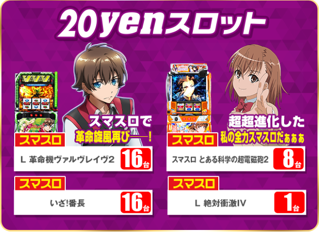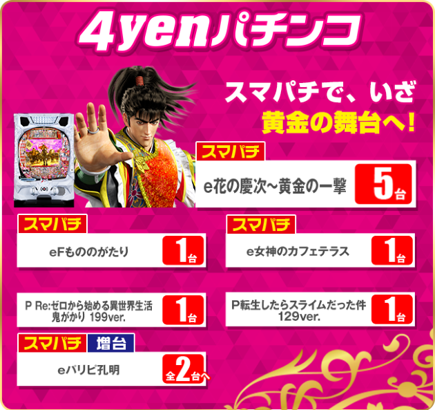 - [4]パチ:271台 [1]パチ:110台 [1000円/47枚]スロ:187台 [1000円/188枚]スロ:17台